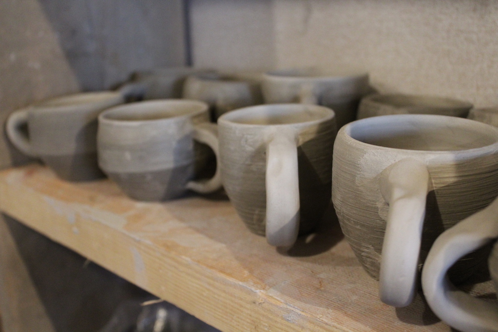 mugs on shelf close up small